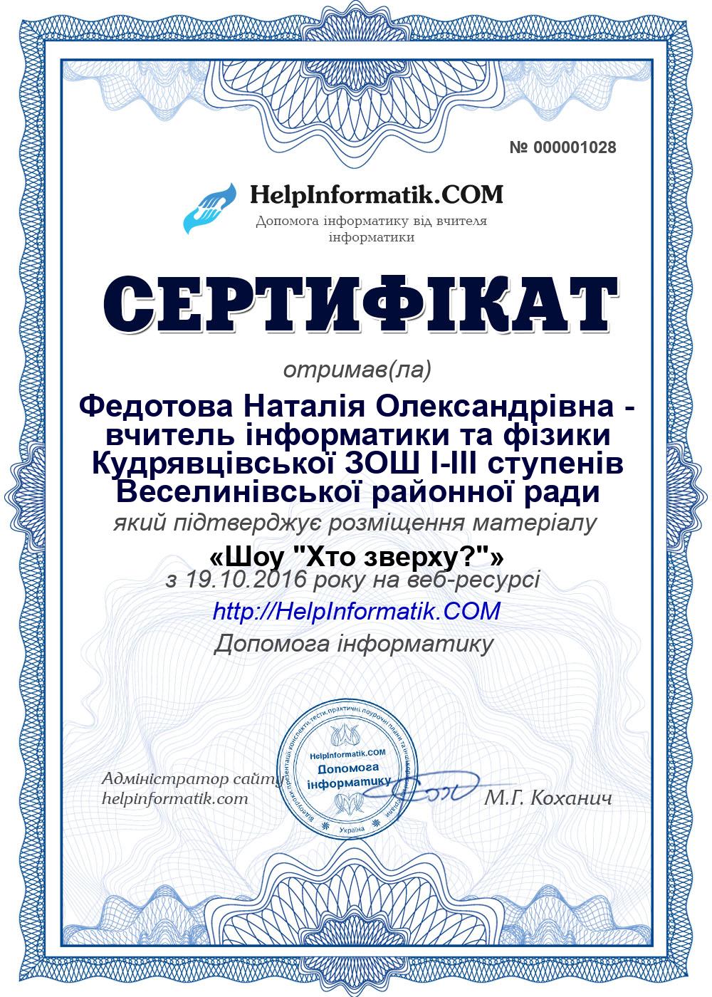 Автор: Федотова Наталія Олександрівна - вчитель інформатики та фізики Кудрявцівської ЗОШ І-ІІІ ступенів Веселинівської районної ради