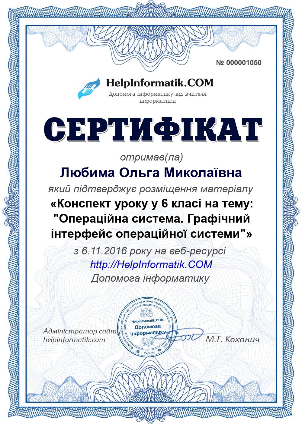Автор: Любима Ольга Миколаївна