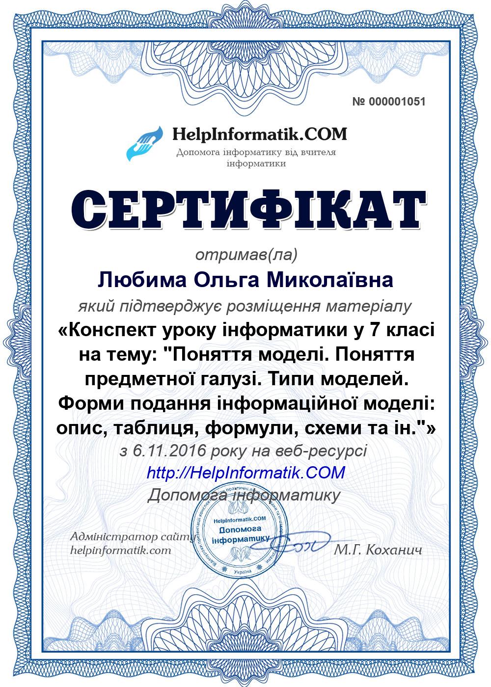 Автор: Любима Ольга Миколаївна