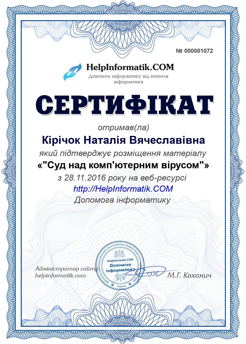 Автор: Кірічок Наталія Вячеславівна