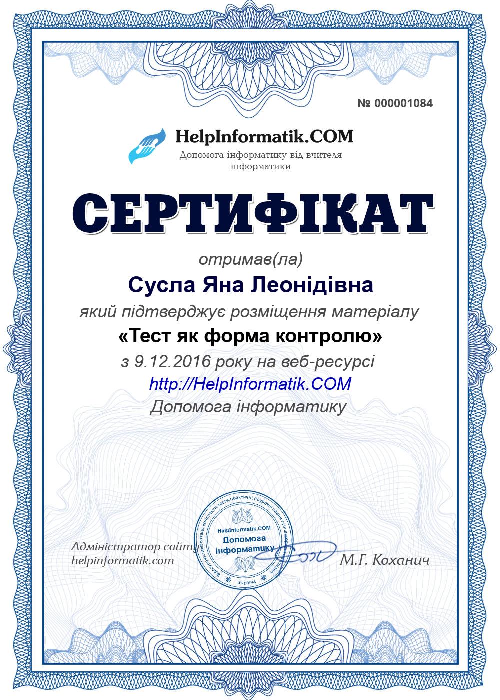Автор: Сусла Яна Леонідівна