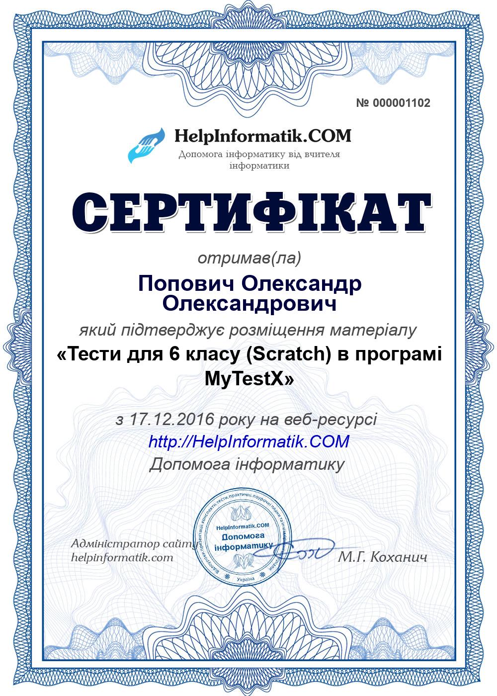 Тести для 6 класу (Scratch) в програмі MyTestX
