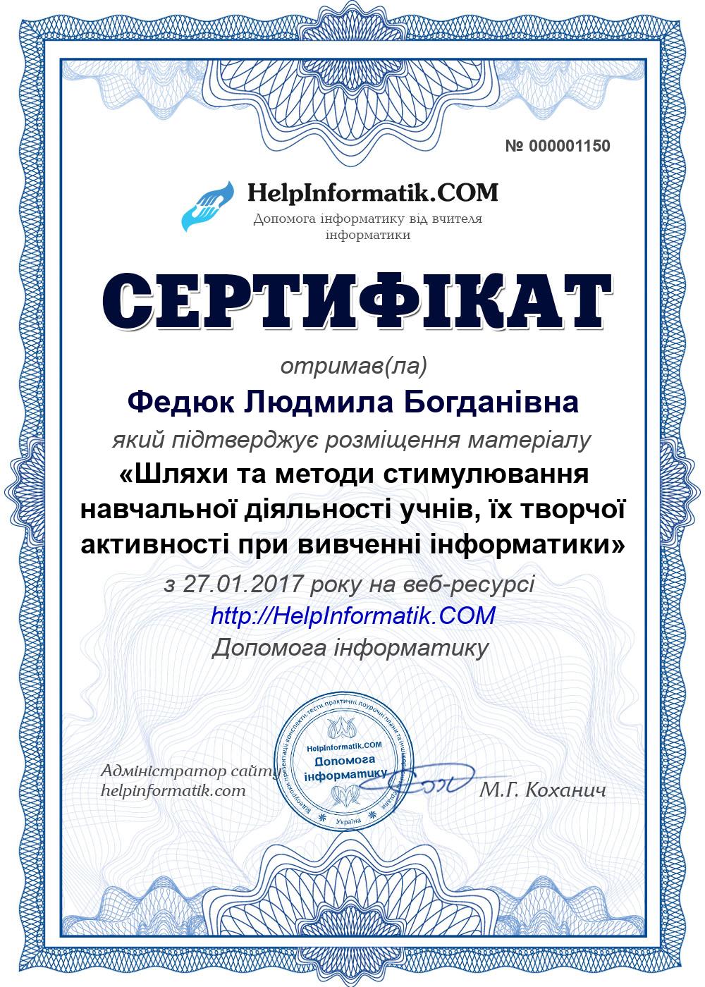 Автор: Федюк Людмила Богданівна