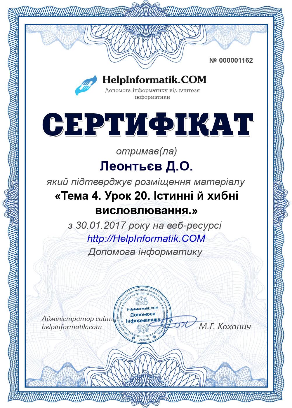 Тема 4. Урок 20. Істинні й хибні висловлювання.