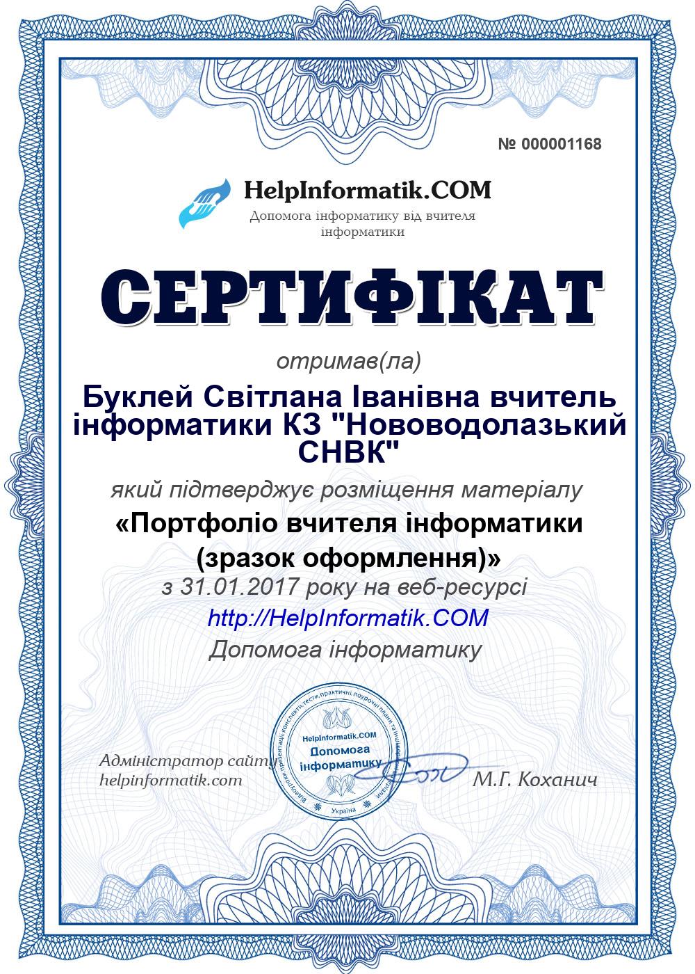 Портфоліо вчителя інформатики (зразок оформлення)