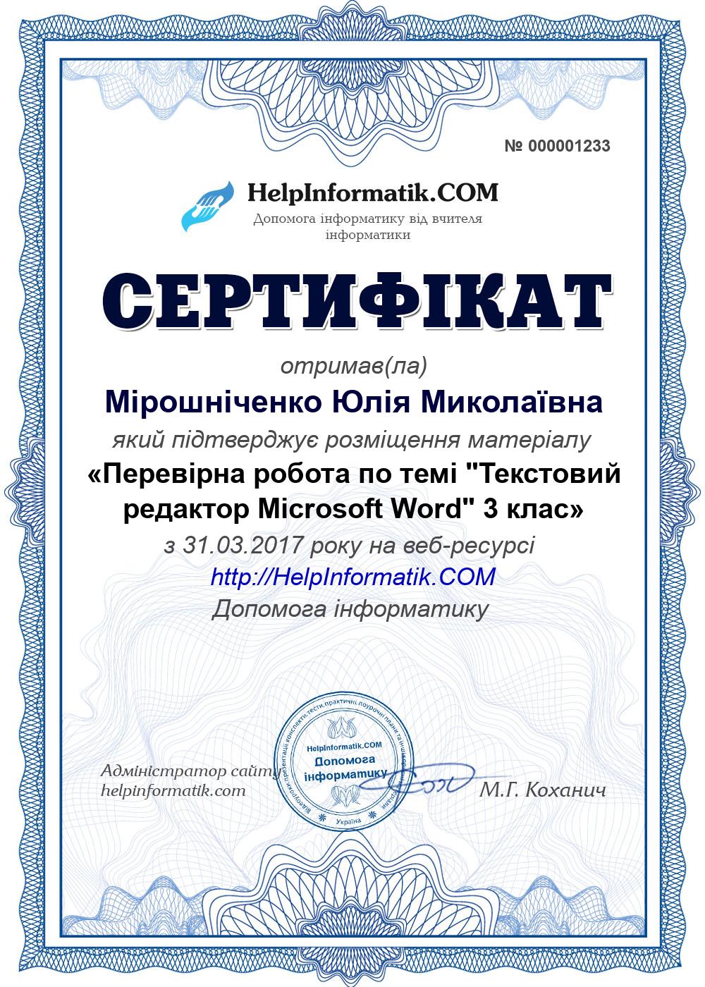 Автор: Мірошніченко Юлія Миколаївна