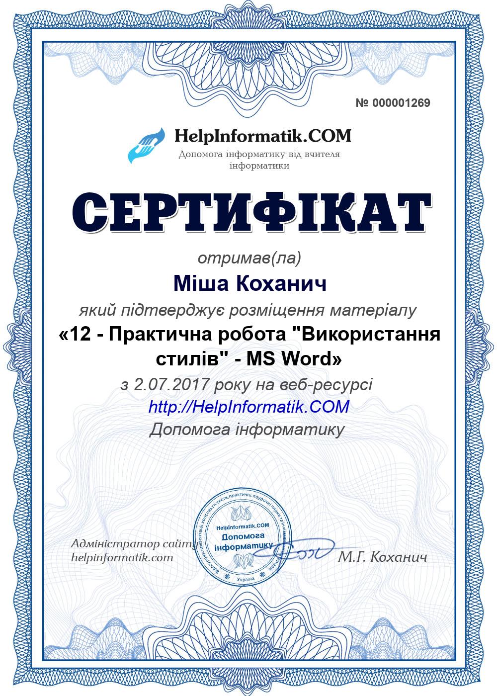 12 - Практична робота "Використання стилів" - MS Word