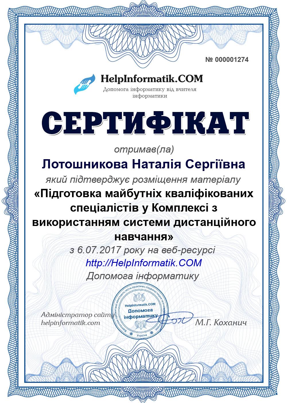 Автор: Лотошникова Наталія Сергіївна