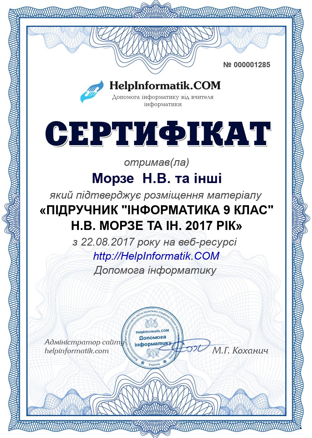 ПІДРУЧНИК "ІНФОРМАТИКА 9 КЛАС" Н.В. МОРЗЕ ТА ІН. 2017 РІК