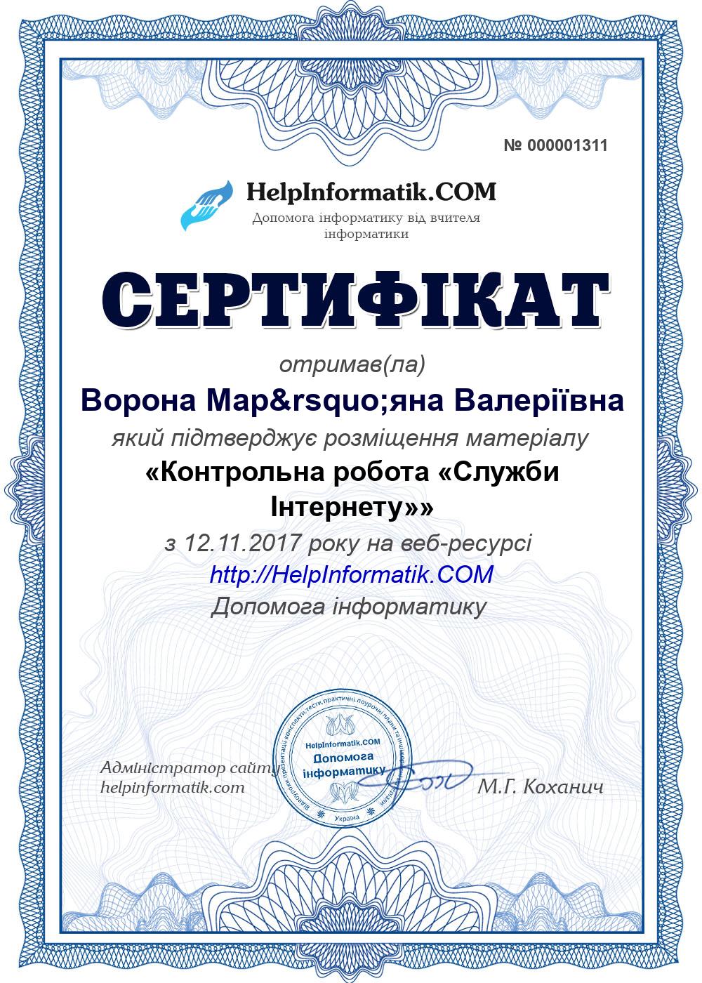 Контрольна робота «Служби Інтернету»
