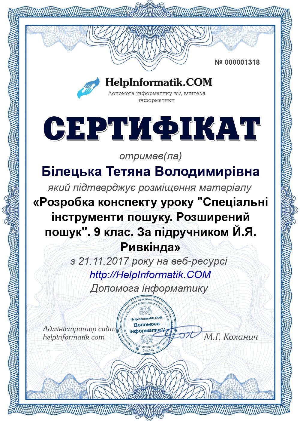 Розробка конспекту уроку "Спеціальні інструменти пошуку. Розширений пошук". 9 клас. За підручником Й.Я. Ривкінда