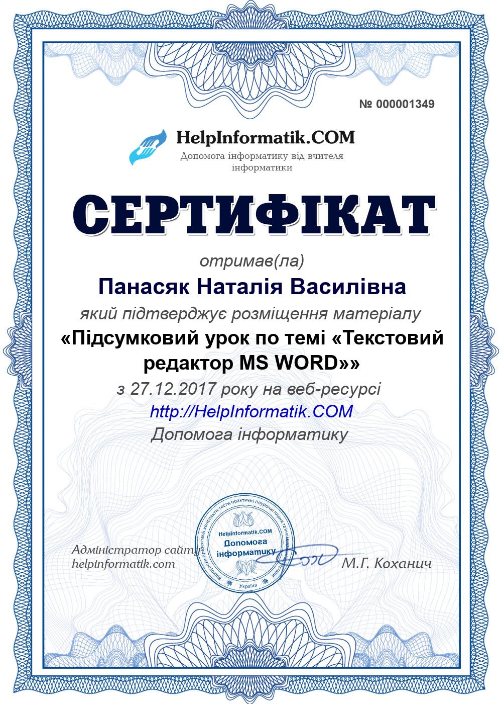 Підсумковий урок по темі «Текстовий редактор MS WORD»