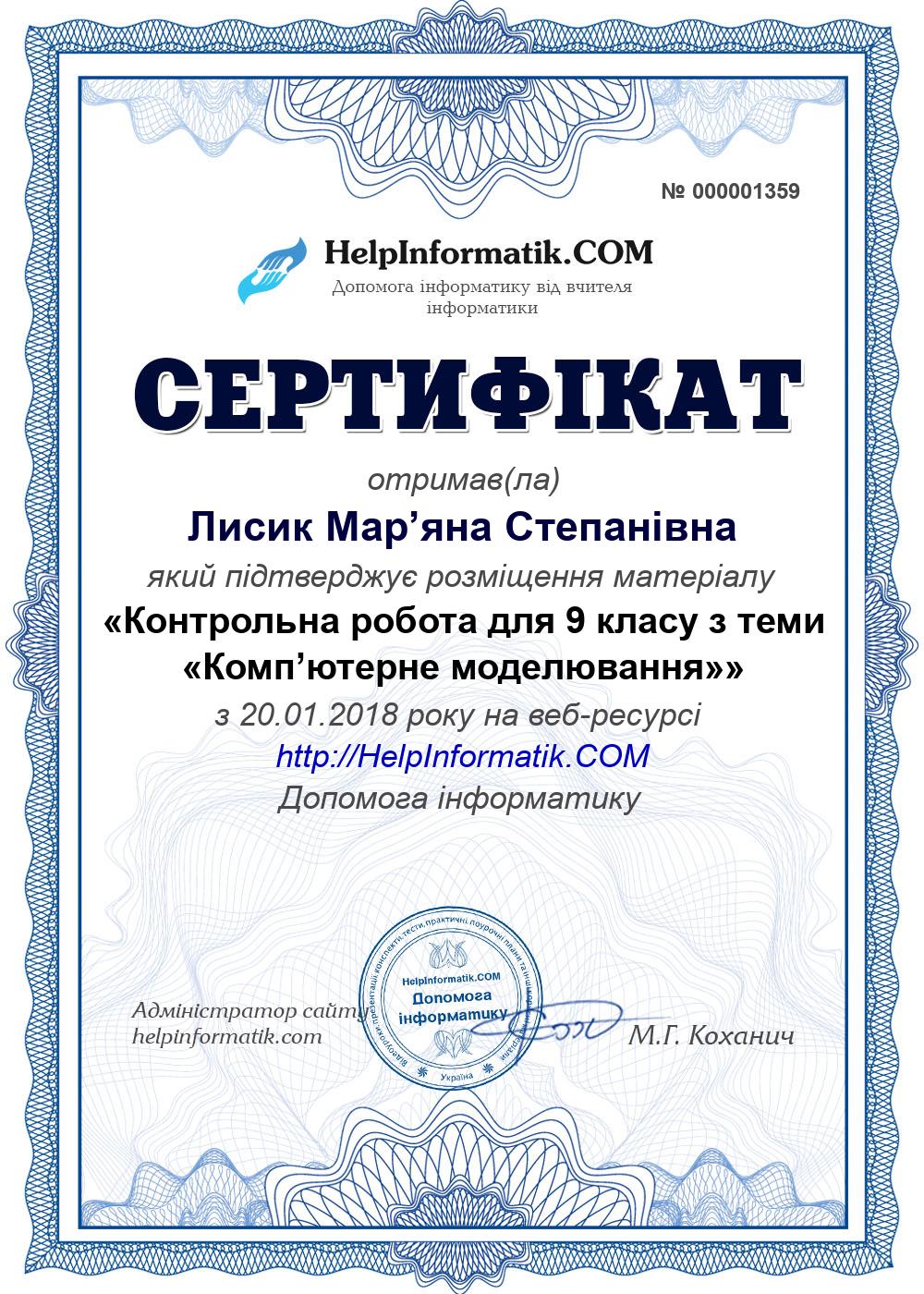 Автор: Лисик Мар’яна Степанівна