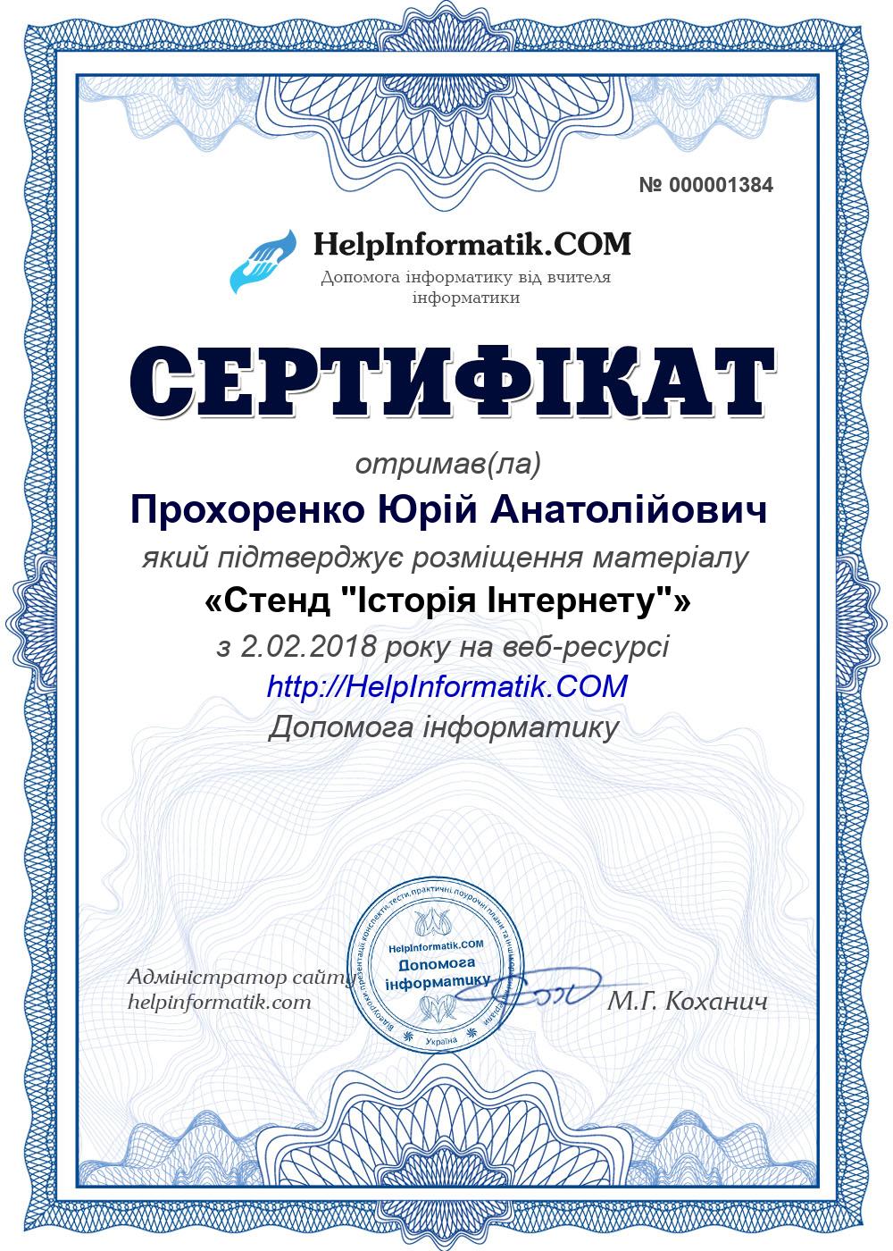Автор: Прохоренко Юрій Анатолійович