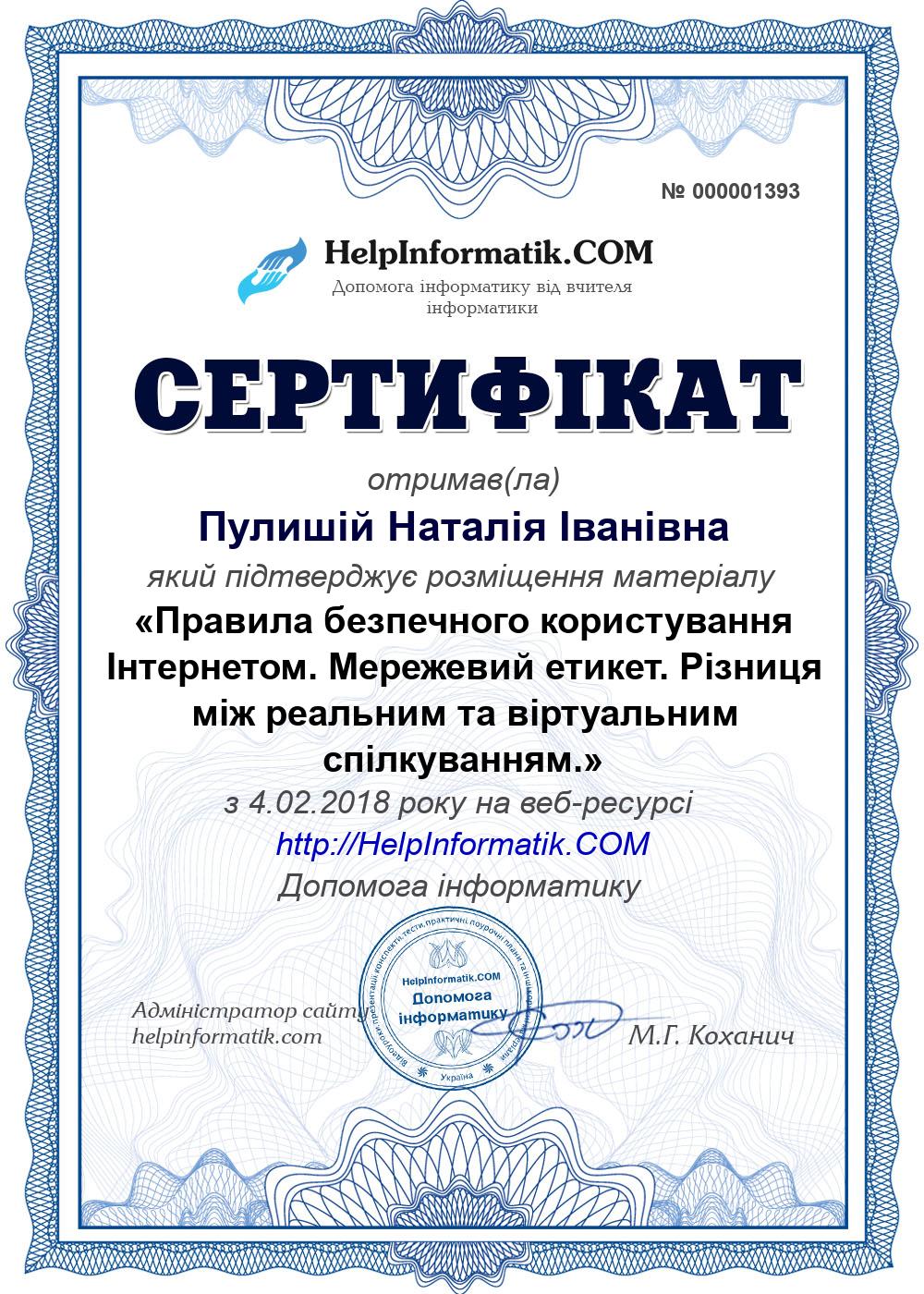Автор: Пулишій Наталія Іванівна