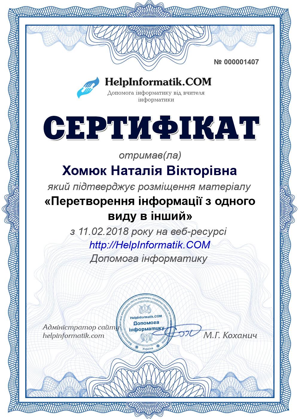 Автор: Хомюк Наталія Вікторівна