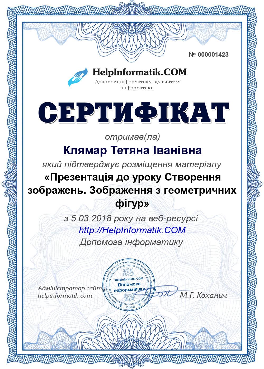 Автор: Клямар Тетяна Іванівна
