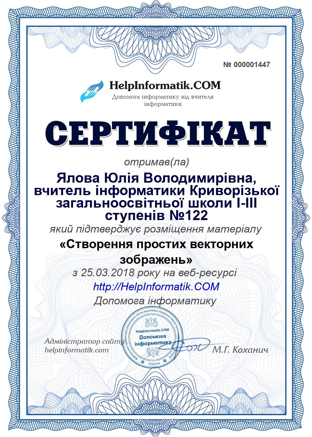 Автор: Ялова Юлія Володимирівна, вчитель інформатики Криворізької загальноосвітньої школи І-ІІІ ступенів №122
