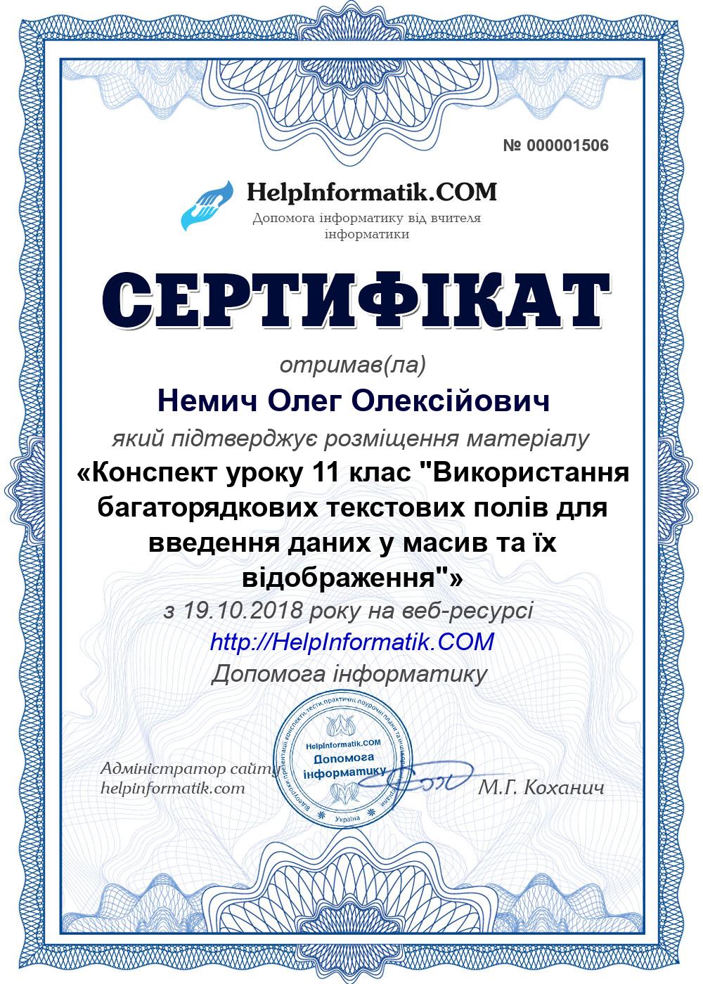 Автор: Немич Олег Олексійович