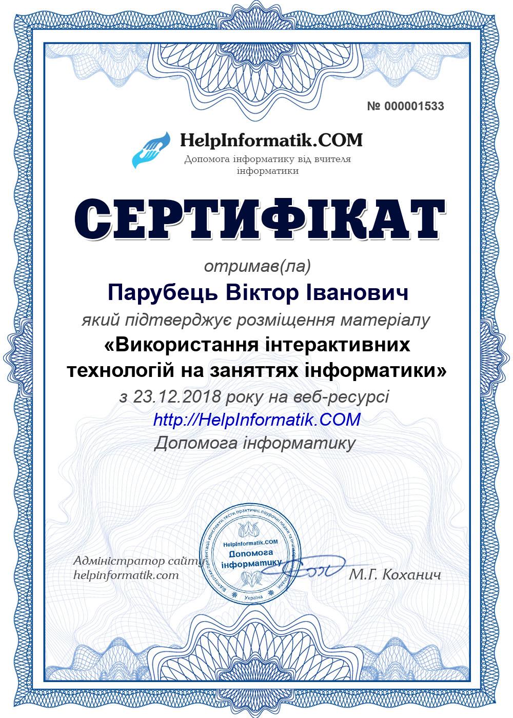 Автор: Парубець Віктор Іванович