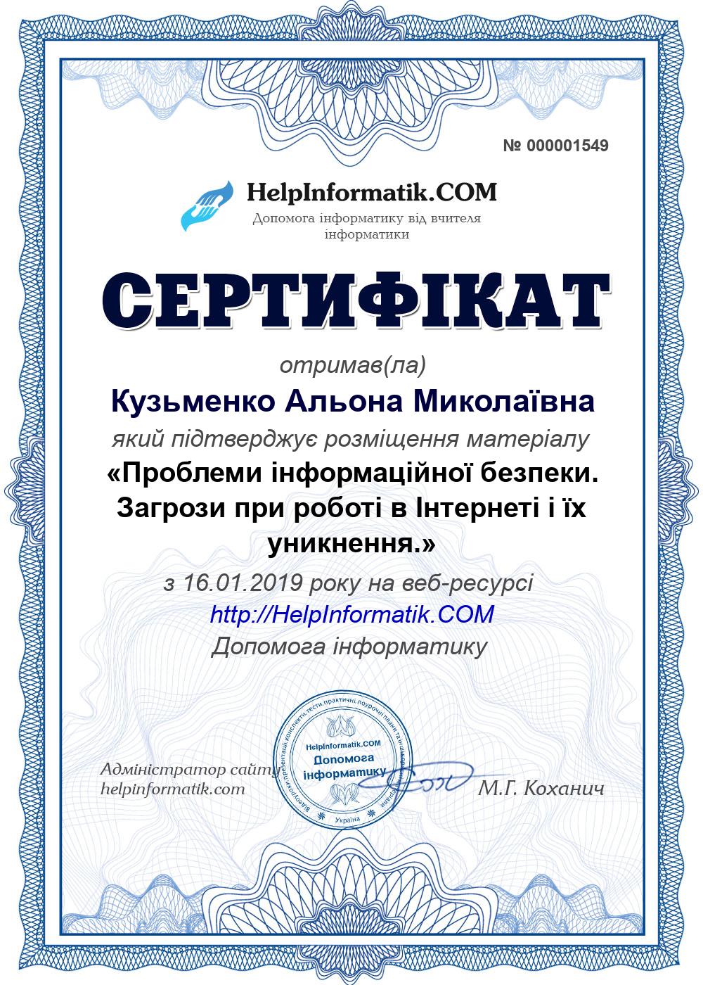 Автор: Кузьменко Альона Миколаївна