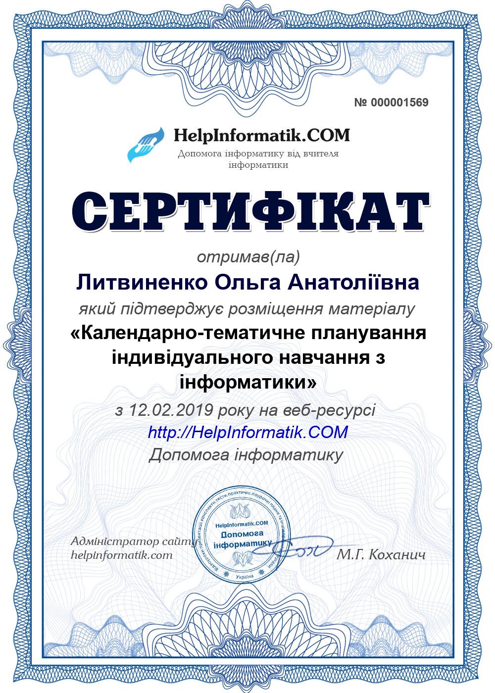Календарно-тематичне планування індивідуального навчання з інформатики