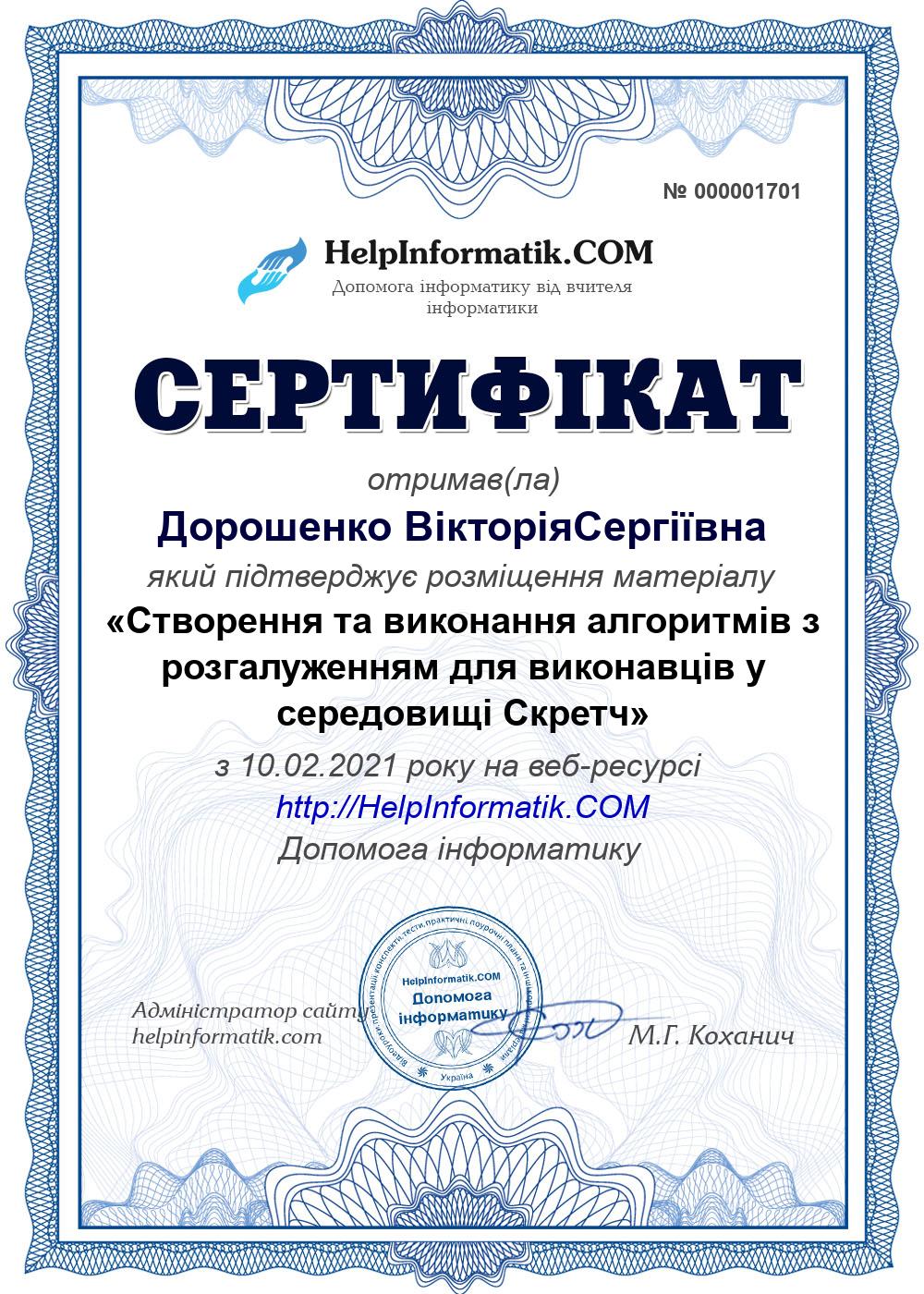 Автор: Дорошенко ВікторіяСергіївна