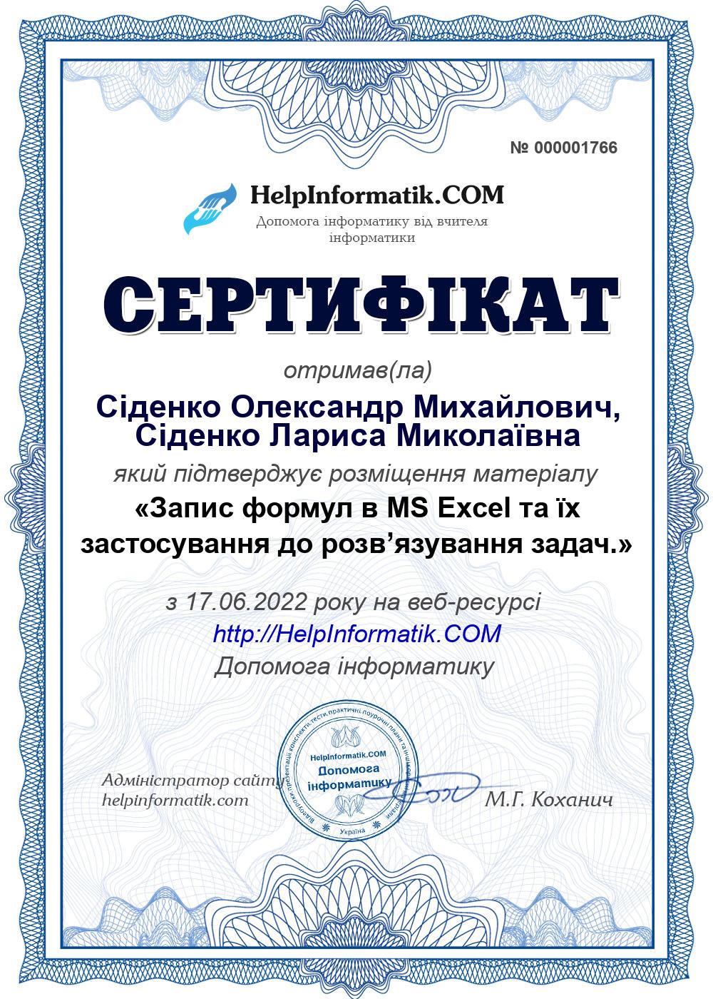 Автор: Сіденко Олександр Михайлович, Сіденко Лариса Миколаївна