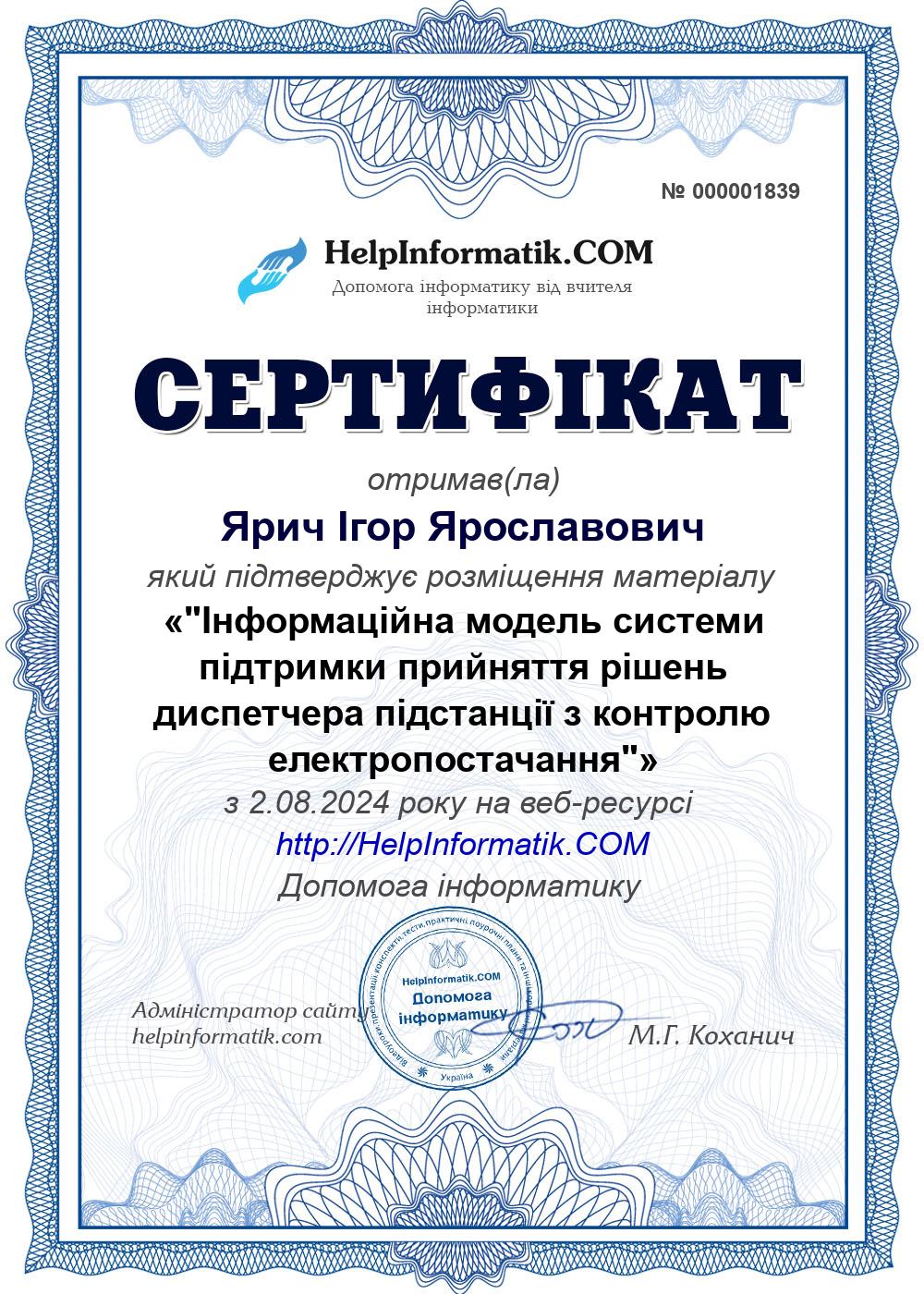 "Інформаційна модель системи підтримки прийняття рішень диспетчера підстанції з контролю електропостачання"