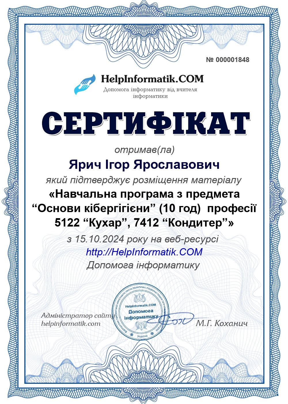 Автор: Ярич Ігор Ярославович