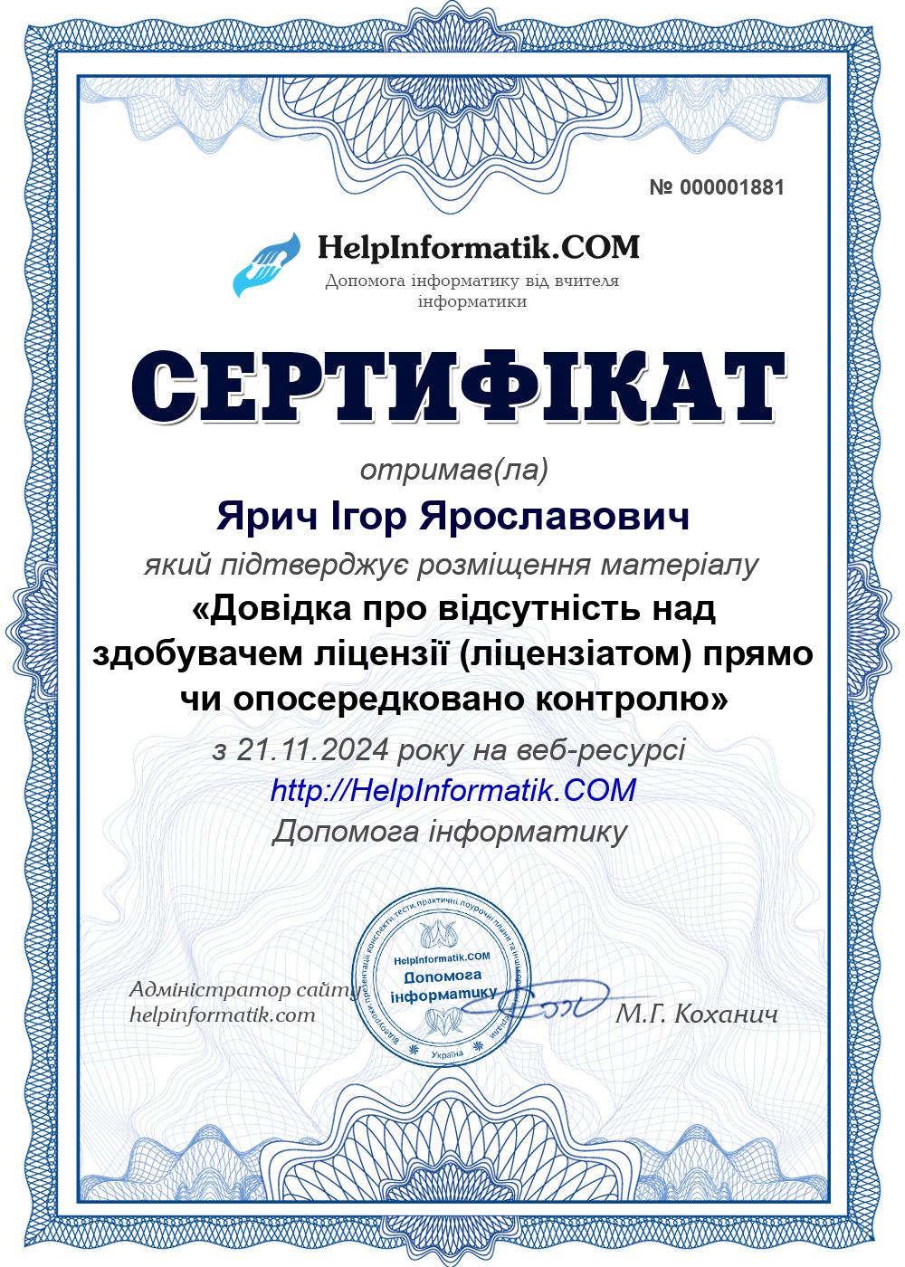 Автор: Ярич Ігор Ярославович