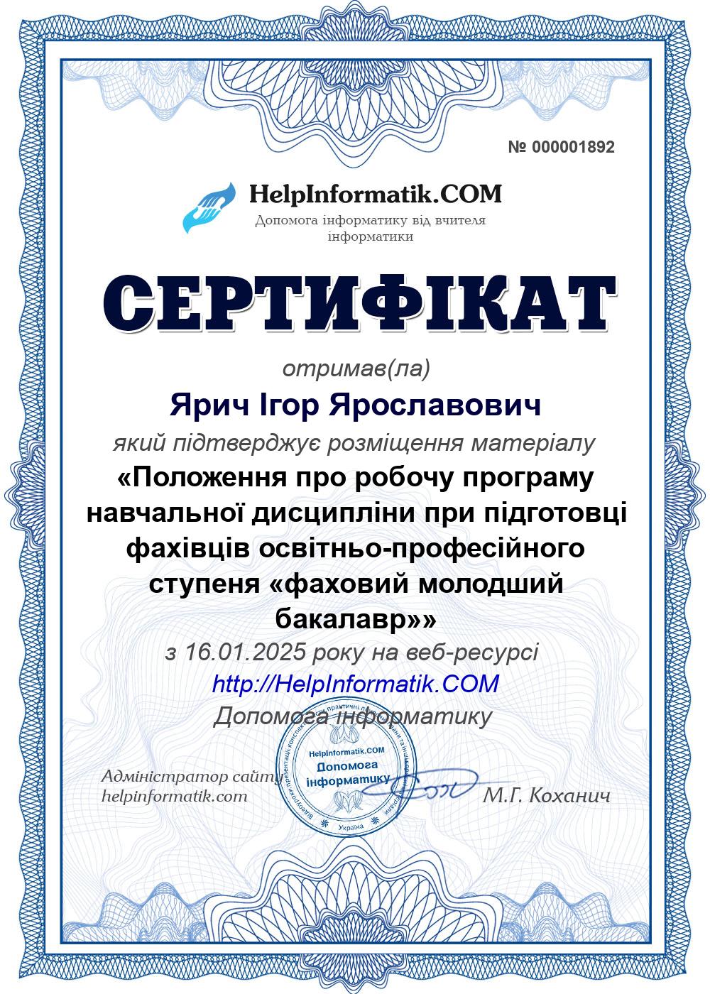 Автор: Ярич Ігор Ярославович