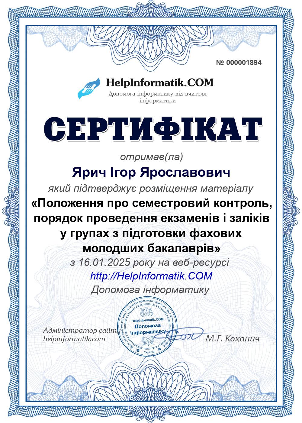 Положення про семестровий контроль, порядок проведення екзаменів і заліків у групах з підготовки фахових молодших бакалаврів