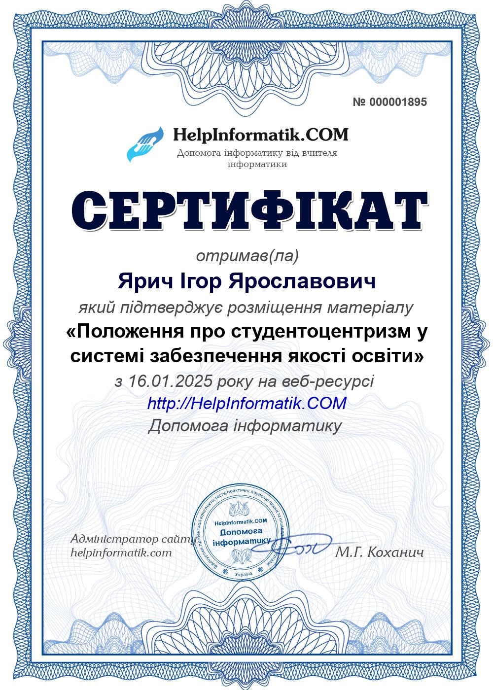Автор: Ярич Ігор Ярославович