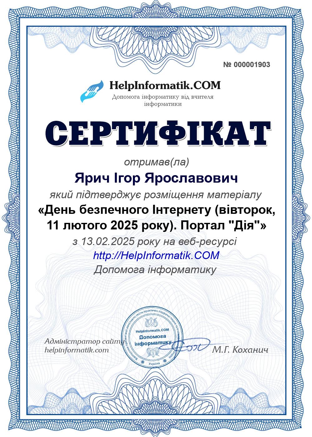 День безпечного Інтернету (вівторок, 11 лютого 2025 року). Портал "Дія"