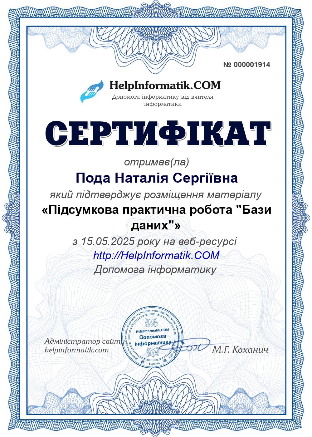 Автор: Пода Наталія Сергіївна
