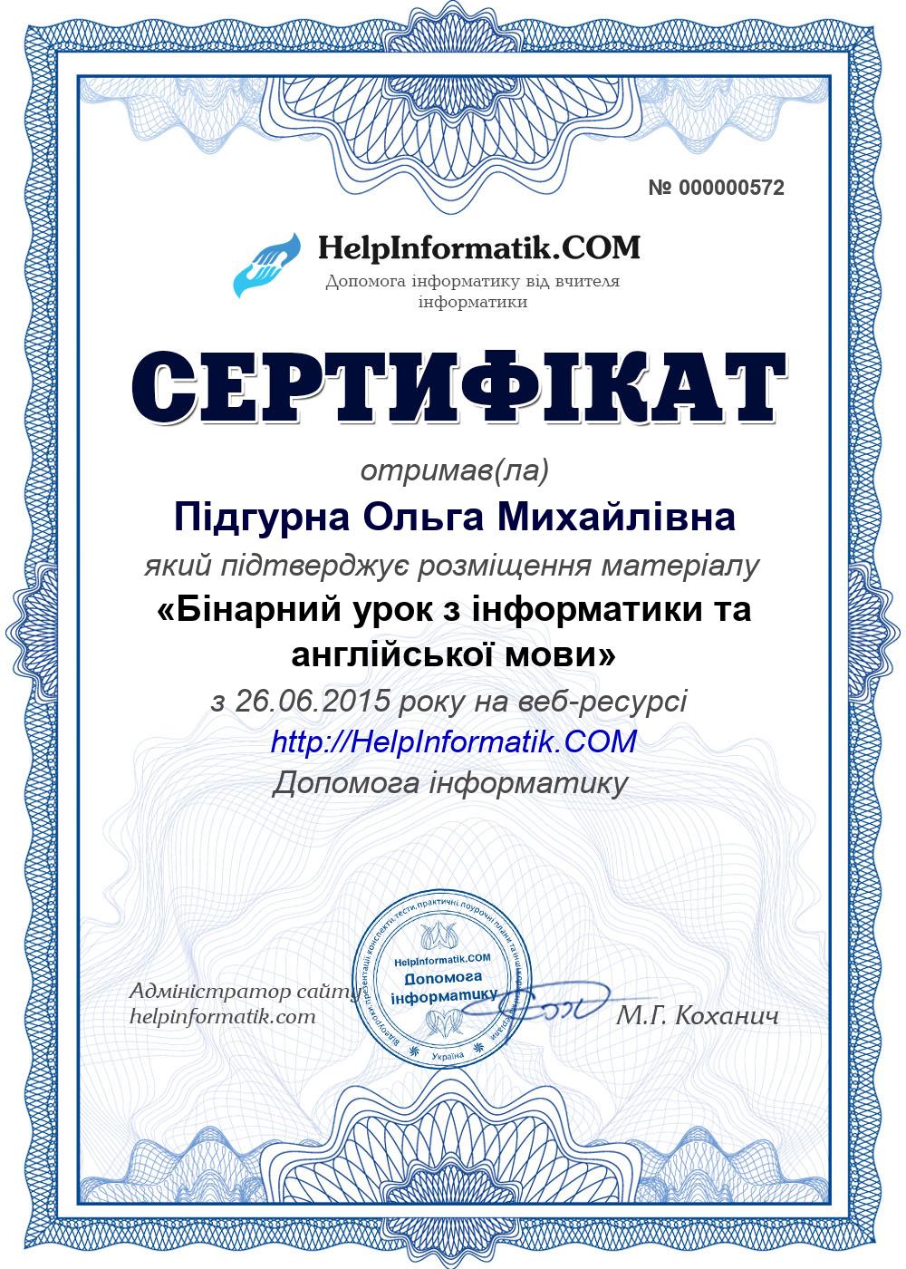 Автор: Підгурна Ольга Михайлівна