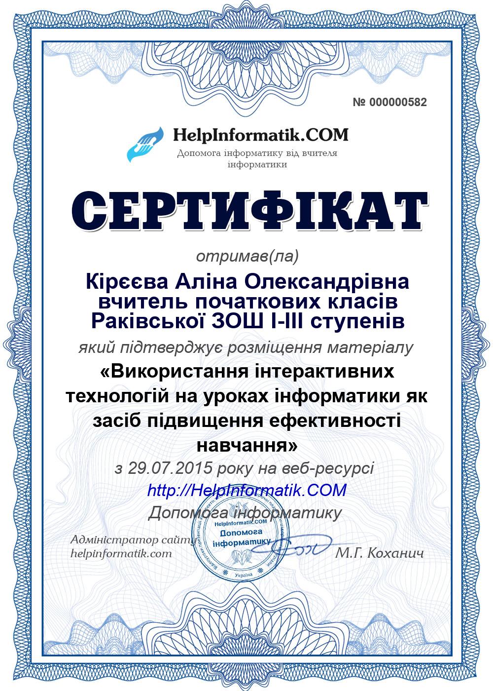 Використання інтерактивних технологій на уроках інформатики як засіб підвищення ефективності навчання