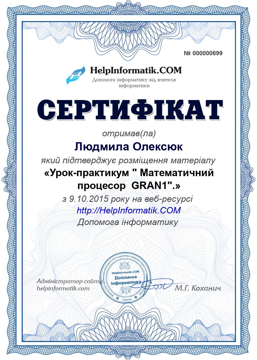 Урок-практикум " Математичний процесор GRAN1".