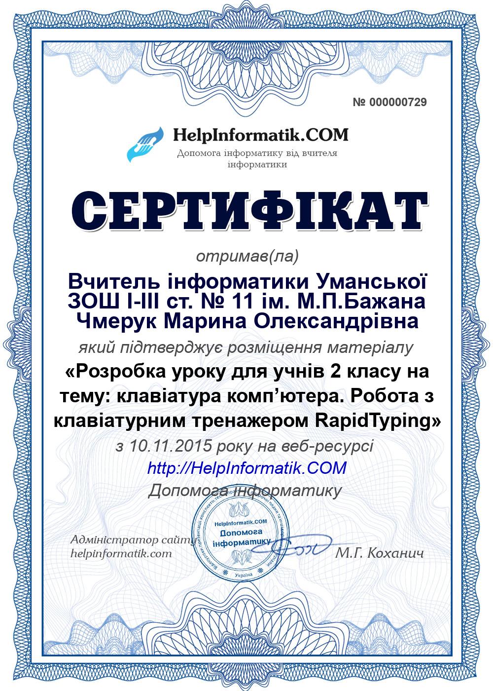Автор: Вчитель інформатики Уманської ЗОШ I-III ст. № 11 ім. М.П.Бажана Чмерук Марина Олександрівна