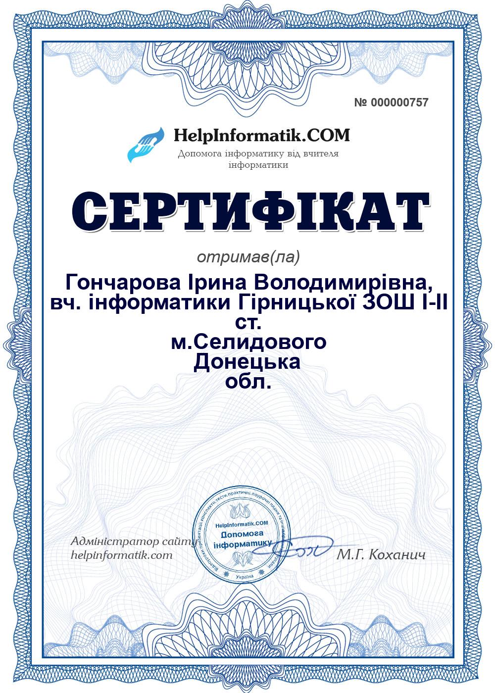 Автор: Гончарова Ірина Володимирівна, вч. інформатики Гірницької ЗОШ І-ІІ ст. м.Селидового Донецька обл.