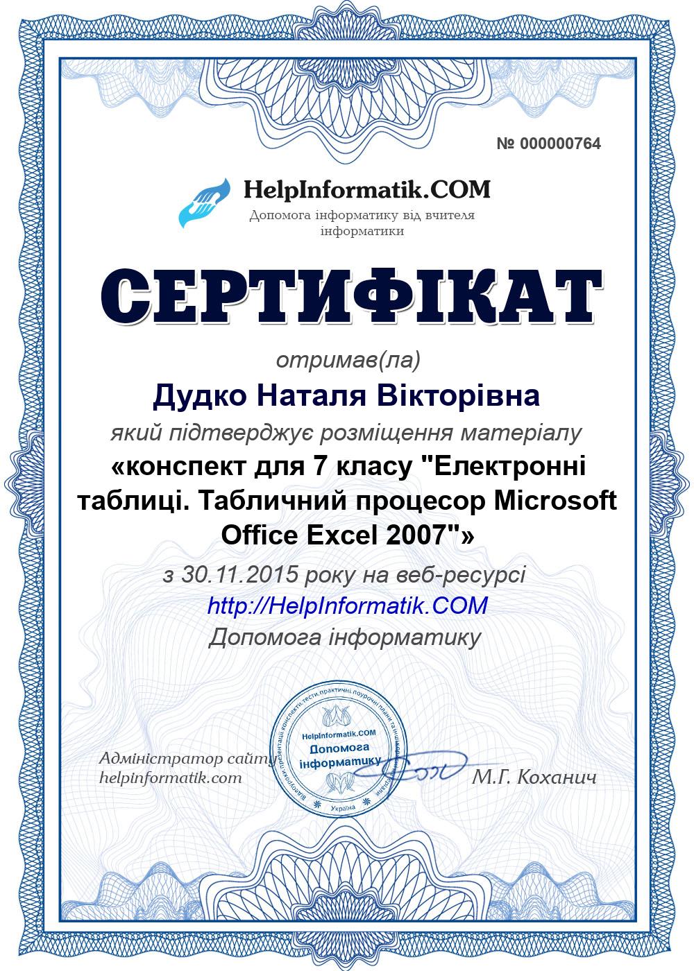 Автор: Дудко Наталя Вікторівна