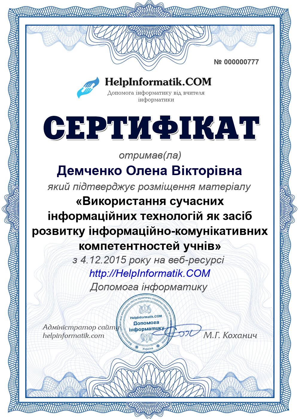 Автор: Демченко Олена Вікторівна
