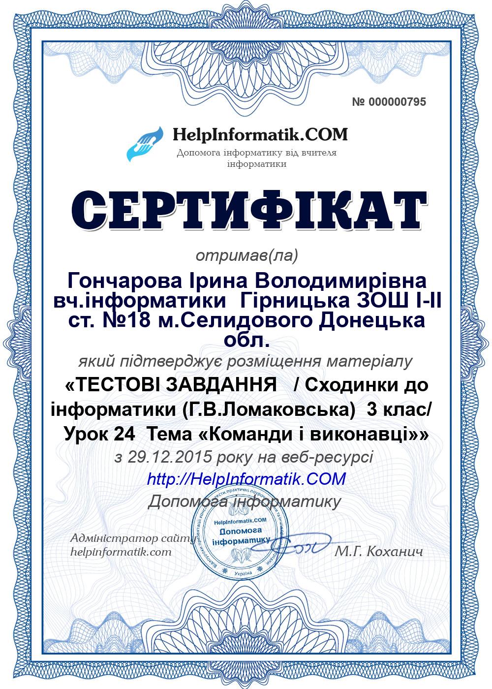 Автор: Гончарова Ірина Володимирівна вч.інформатики Гірницька ЗОШ І-ІІ ст. №18 м.Селидового Донецька обл.