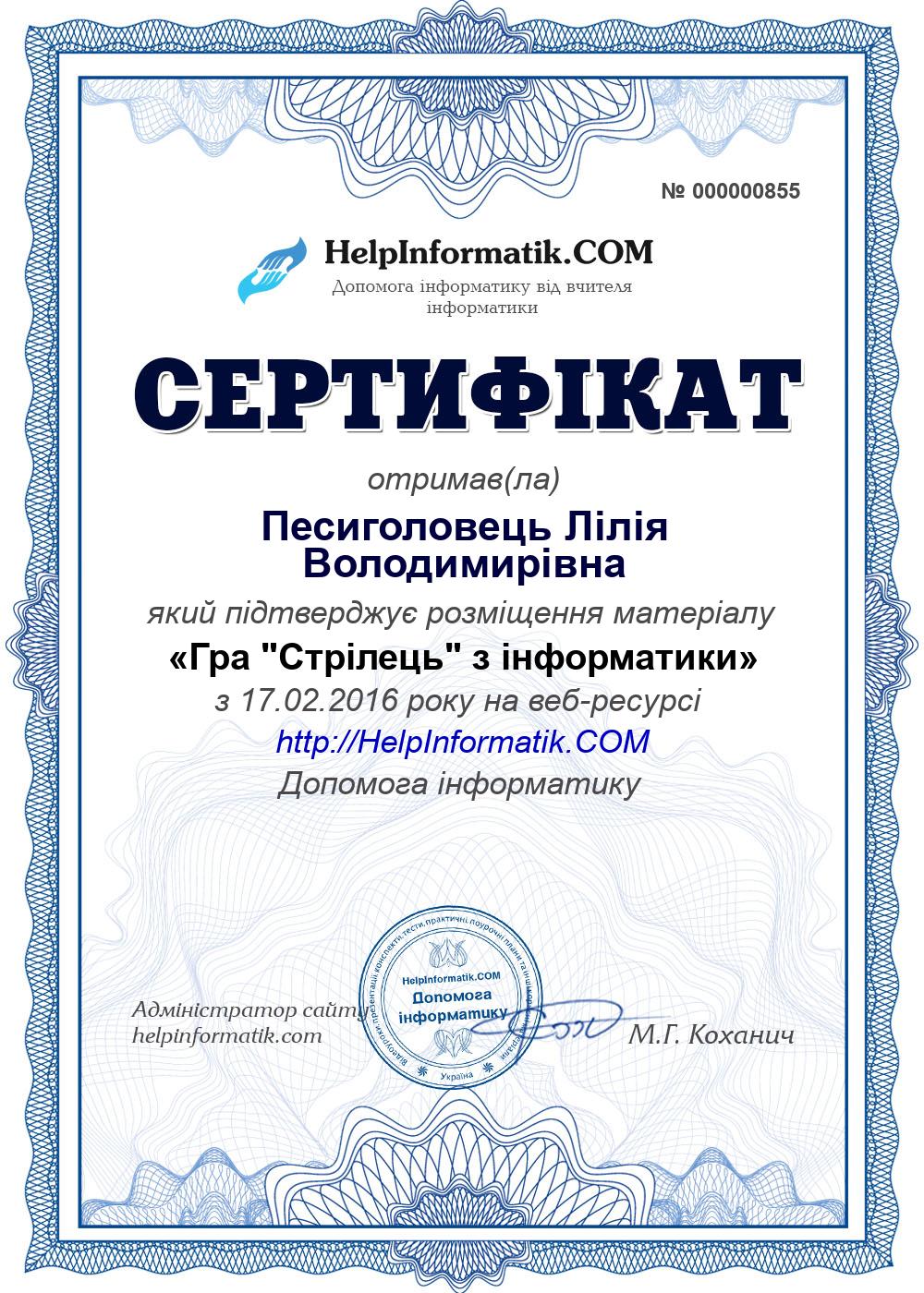 Автор: Песиголовець Лілія Володимирівна