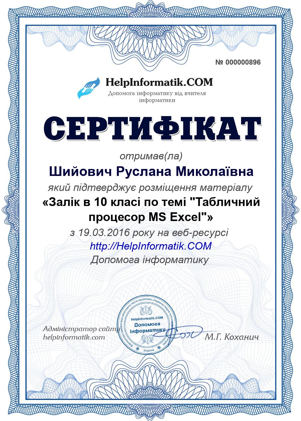 Залік в 10 класі по темі "Табличний процесор MS Excel"