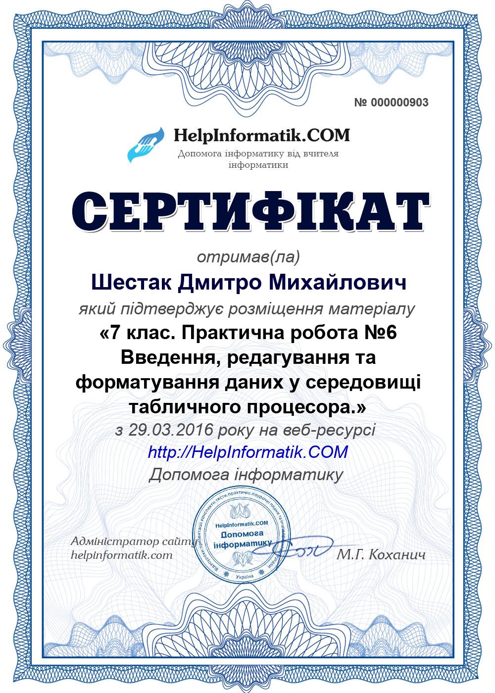 Автор: Шестак Дмитро Михайлович