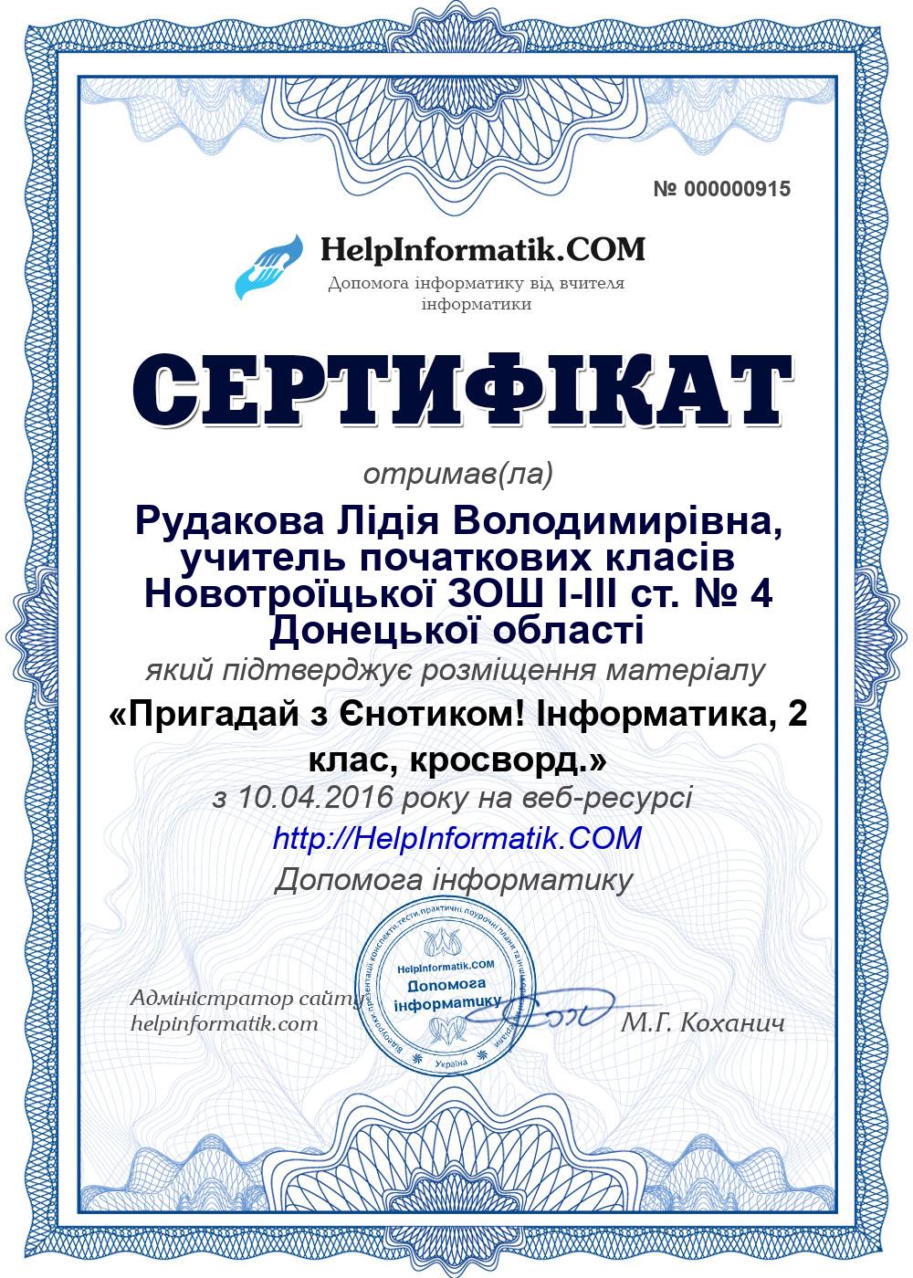 Автор: Рудакова Лідія Володимирівна, учитель початкових класів Новотроїцької ЗОШ І-ІІІ ст. № 4 Донецької області