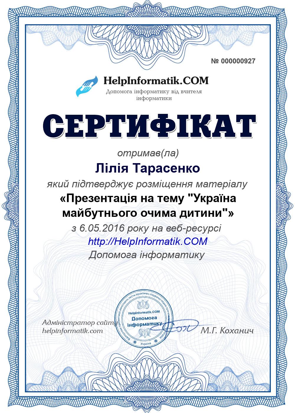 Презентація на тему "Україна майбутнього очима дитини"/ створена учнем 8 класу. Робота була учасником міського конкурсу "Компютерна миша - 2016", та отримала приз "Симпатія глядачів"